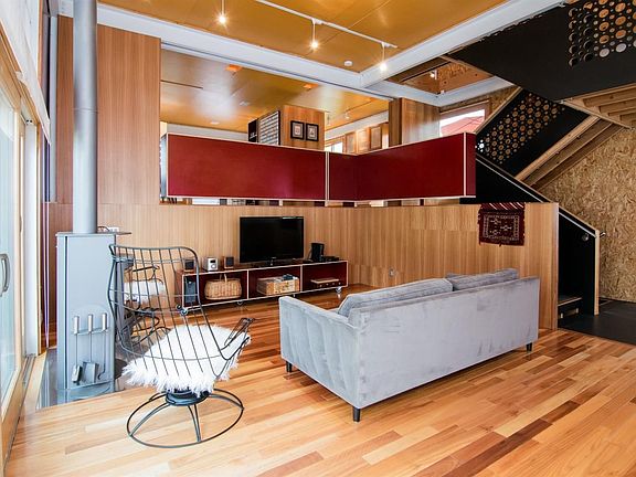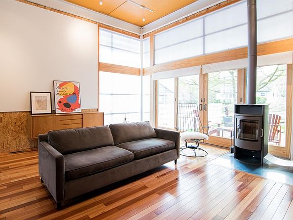 Worthy of Architectural Digest or Dwell, this modern abode will speak to the individual who appreciates minimalism, clean lines, and style at its best! Designed and built by architects Guthrie and Buresh as their personal residence, this home is uniquely constructed with concrete masonry foundation walls, steel frame, structural insulated panels by Insulspan, Cedar tongue-and-groove siding, and copper gutters. The crisp interior, highlighted by solid hardwood floors from Eucalyptus trees, brings the outside in and plays host to a streamlined kitchen with stainless counters and maple cabinets, formal dining, two-story living room with Danish wood-burning stove and stacked windows, three bedrooms, and lower-level office. Outside is a cantilevered deck overlooking the fenced backyard. All of this in a sought-after neighborhood on Ann Arbor's West Side!