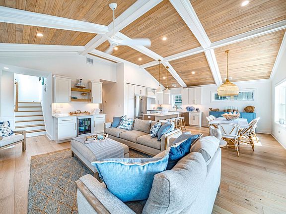 Master craftsmanship on display!! Custom coffered cathedral ceiling creates a stunning focal point when you enter this 4 bedroom 2.5 Bath Beach retreat in the heart of Ocean City! Second floor features ELEVATOR, Rooftop Deck with OCEAN VIEWS and AMAZING SUNSETS. Custom wet bar, designer finishes and trim throughout. Thermador Appliances, Large front deck with 50" TV that rises from enclosed weatherproof box!! Enjoy 2 off-street parking spots plus a garage and enclosed outdoor shower. 7 New wall mounted smart TV's including high end Samsung FRAME TV w/ custom Teak Bezel to match interior decor, 65" Weatherproof TV on rooftop deck. Ring Camera. Short walk to Beaches, Boardwalk and everything this beloved beach town has to offer! No expense spared. Fully Furnished!!