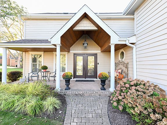 Stunning and elegant, this home is sure to win your heart. Located in one of the finest neighborhoods in Darien Before heading inside, check out that curb appeal! Large and well-manicured arborvitae trees offer privacy from the neighbors to the North, and the Modern Farmhouse style double garage doors and window boxes are warm and inviting. The lot naturally invites you towards your left where you'll head up the path towards the front door and past the established hydrangeas and immaculate landscaping. The front porch is perfect for sitting and watching the world go by - and look up at that beautiful wood paneling! Head through the French front doors and into the foyer. The foyer is a hub for the office, living room, upstairs, and first floor hallway. The first floor is a circle. Let's start in the office to the left of the foyer. Go through the French doors and check out those beautiful built-in cabinets. This large office would also make a nice playroom. Go past the stairs and into the cozy, naturally well-lit living room with a brick fireplace and built-in cabinets. Head up one step to the formal dining room. The dining room has so many cool features: a bay window, a cut out wall creating a view of the living room fireplace (with additional storage), patio door leading to the deck, and access to a hallway with built-in cabinets for China, glasses, etc. and a wet bar. Head down that hallway for access to the very large, unfinished basement (with tons of storage) and to the first floor hallway. Across from you is the laundry room and mudroom with access to the 2 car garage. To your left is the kitchen...and what a kitchen it is! You're immediately hit with bright light from the curved windows around the kitchen table. And check out that domed ceiling! With granite countertops, professional grade appliances, tons of cabinets, and an extra countertop perfect for a desk or homework space, you'll never want to leave the kitchen. Pass the half bath to your right and circle back through the foyer to go upstairs. The first 3 bedrooms are clustered in the corner to your left. Let's head right towards the beautifully remodeled full bathroom. Keep going and into a giant bedroom with high ceilings, skylights, loads of closet space and built-ins. This could be used as an extra large bedroom or second floor rec room as it's currently being used. Head down the hall and into the primary suite. The primary bathroom features a large soaking tub, skylight, separate shower, and entry into a large walk-in closet with extra high ceilings. Let's go back downstairs and go into the backyard. There are multiple ways to access the rear of the house. From the front of the house, head down the path to the right past the side garage door and either go up onto the deck or straight into the backyard. From the kitchen, head out the door next between the table and the extra counterspace and onto the deck. From the dining room, head out the sliding door onto the deck. And from the living room, go out the sliding doors and onto the patio and firepit. The backyard is magical with a water feature featuring a small waterfall and stream trickling from South to North. There is a large shed on the South end of the property. All of the land to the West is public but it gives the feel of an extra large backyard since access to this area is difficult for outsiders. It's like your own private park! This house is truly a gem and is waiting for you to call it home.