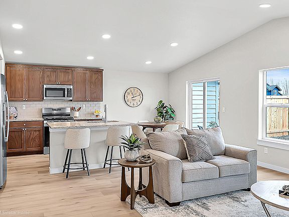 COMING SOON! The 1395 square foot Darrington is a well-appointed two-story townhome that lives larger than most mid-sized plans. The dramatic entry leads to the open kitchen and living room area, with plenty of light and space for entertaining. The kitchen boasts ample counter space and cupboard storage and features an optional desk for convenience and organization. Upstairs, the main bedroom has a large closet and bathroom, and two other sizable bedrooms offer large closets and share a second full bathroom.