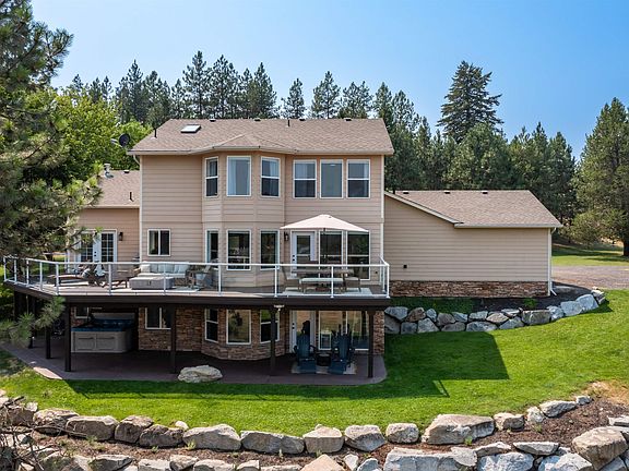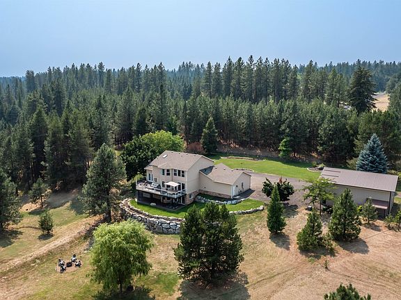 Beautifully REMODELED 2 story on 5 acres in Buckeye Valley Estates with a stunning sunrise view of Mt Spokane and gorgeous treed and open countryside! Surrounded by wildlife, nature and tranquility, this lovely land offers a 30X40 shop with attached dog run/kennel, garden with raised beds and water, fire pit, flat play area, enchanted forest vibe to the custom new tree house, horse potential and so close to Mead schools, Cost-Co, golf, Green Bluff & Loon Lake. Expansive entertaining deck off the great room & dining room with view & lower level huge relaxing covered patio with hot tub. Updated cook's kitchen with custom cabinetry, stainless steel appliances, island & opens to the great room. Remodeled & modernized entryway, formal living & dining room and main floor office & laundry room. All new bathrooms, luxury master suite with view, fully remodeled daylight walk-out lower level with 2 family rooms & potential for in-law suite or 5th bedroom. Nice mudroom space in huge three car garage & fabulous storage.