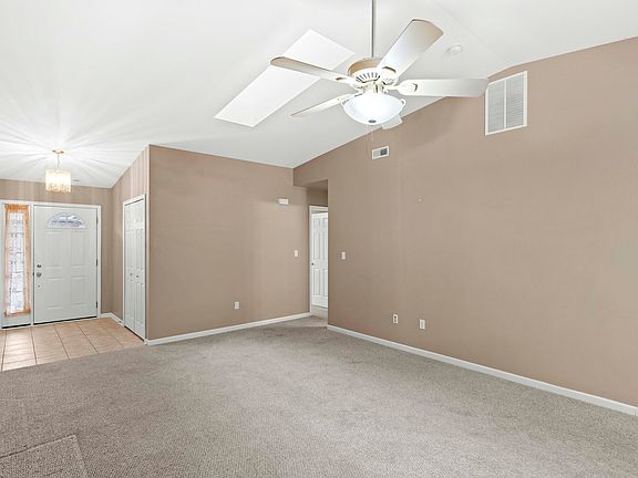 Extra spacious END UNIT allowing for extra sunshine to come through in two bedrooms! This 3 bedroom 2 bathroom townhome features one level living. Upon walking in, you'll appreciate the spacious living room that is open into the eat in kitchen. Off to the left of the living room are the two extra bedrooms with great closet space and a full bathroom. Off the kitchen is the laundry area and the primary bedroom. The primary bedroom features vinyl plank floors and an extra large walk in closet. Also off the kitchen is garage access! You enter on the back side of the building to get to the garage. Finally, you can walk outside into the gated patio area which is perfect for enjoying the warm summer evenings. Check out this low maintenance home today!