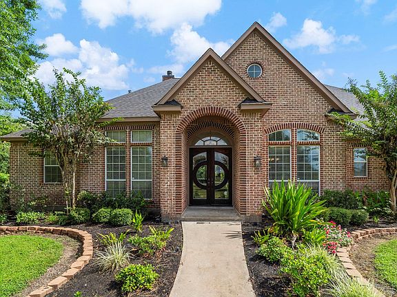Welcome to this custom home on almost 4 acres of country living at it's finest! Over 25 huge shade trees - many of them are producing Pecan Trees! This home was lovingly built with 69 - 10 foot bell bottom piers for added support and peace of mind. This home did not flood during Harvey and is ready to become your Forever Dream Home! Bring your horses - the property is fenced and provides lots of shade! The versatile floor plan offers a large family room with stone fireplace, built-in shelving and cabinets, hardwood flooring and full wall of windows overlooking the covered patio and gorgeous, shaded back yard. Primary suite is your perfect escape to relax and even has a private door leading to the covered back patio. Home office and formal dining room. Huge game room upstairs with built-ins and doors leading out to the expansive covered balcony that gives you a panoramic view of the back yard! The upstairs also offers a large bedroom and full bath - perfect space for guests.