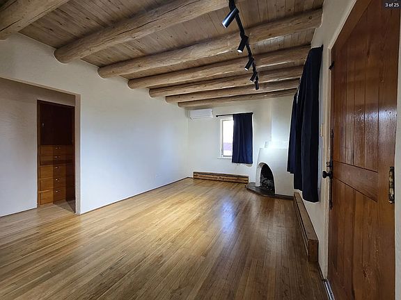 Nestled in a central Santa Fe location, this charming three-bedroom, one-and-a-half bathroom home offers both comfort and convenience. Featuring warm wood flooring and a cozy kiva fireplace, the living space is inviting and stylish. This home has updated appliances and fixtures, including a gas stove/range, dishwasher, refrigerator, and washer and dryer for added ease. Outside, enjoy a fenced backyard with a covered portal, perfect for relaxing or entertaining, along with a storage shed for extra space. Off-street parking adds to the home's practicality. With its prime location and thoughtful updates, this home is a fantastic leasing opportunity in Santa Fe.