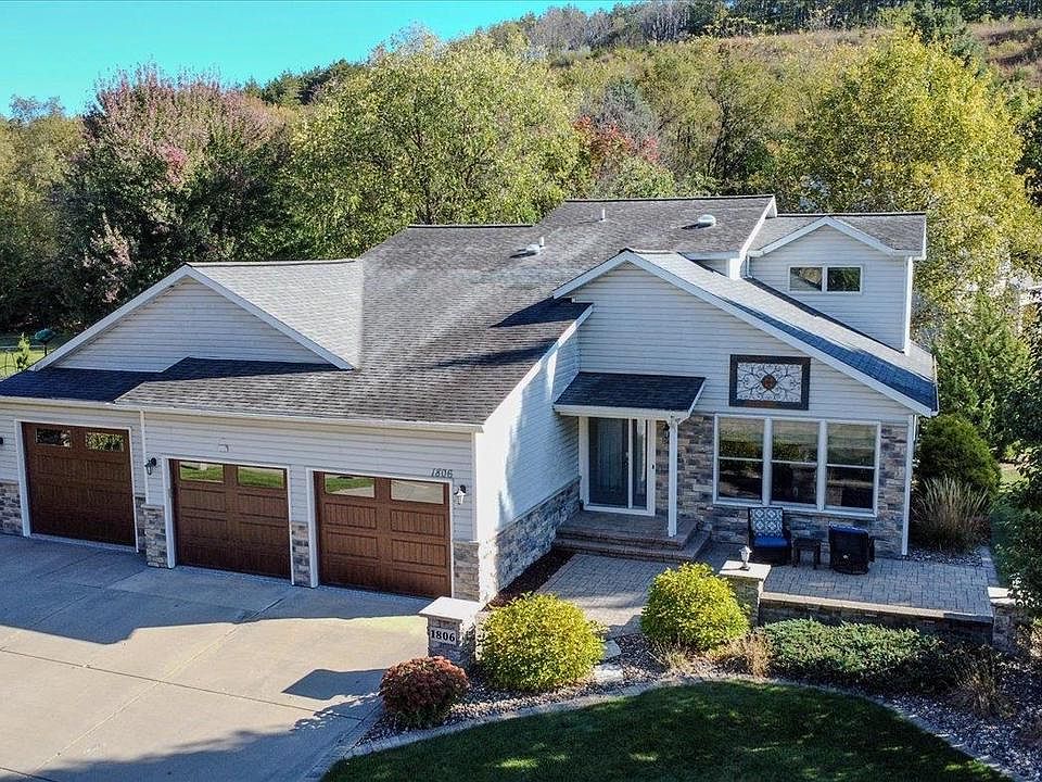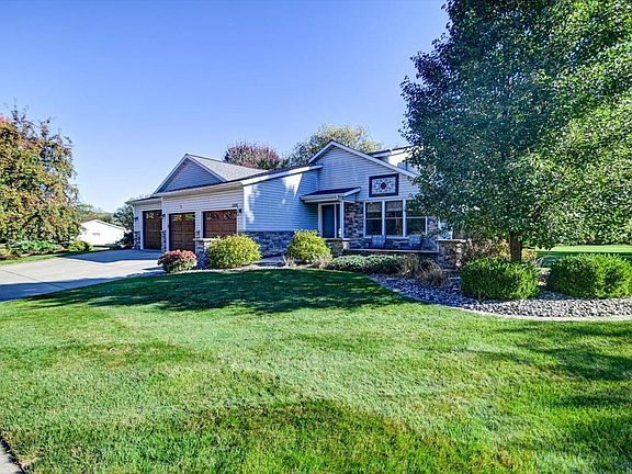 Pride of ownership all over this home! From the time you walk in you will see for yourself. Home features good sized Foyer that opens to Living Room. Very workable Kitchen with Stone Counters, Maple Cabinets and Island. Big Main Level Primary Bedroom with Tile shower/bath and large closet. 2nd story features 2 good sized bedrooms, one with direct access to bath, another large walk-in closet with extra space. Bonus 7x11 Craft/Play Room plus 5x22 area for storage. Huge LL is unfinished and ready for living area expansion. 3-1/2 stall, Finished, Heated Garage is to die for. Painted, Coated Floor and Gladiator wall hanging panels. Paver patio front entrance and large composite Deck in back. Large Corner lot with mature trees next to public area with playground equipment.