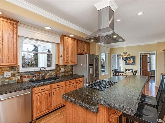 Immaculately maintained, four bedroom, Sanford built home, located in Timberline Ridge, on a spacious, mature lot. This community is a mature development of 368 homes in Highlands Ranch, with its own neighborhood pool & access to a huge trail system. Natural light abounds in this traditional floorplan, with main floor offering living room/den, dining room, family room & large updated kitchen with nook. Crown molding & extensive hardwoods throughout. The family room adjoining the kitchen has a gas fireplace with tiled surround, solid wood built-ins & windows to backyard. Step into the large kitchen, with oak cabinetry, upgraded rough edge granite counters, breakfast bar & gas stove. Enjoy the mature landscaped yard with hot tub and built in fire pit from your wisteria covered patio or cozy gazebo. Main floor laundry has built-in shelving & utility sink. Upstairs offers a large primary bedroom, with walk-in closet. The primary bathroom has been updated, with tile floor, dual sinks & steam shower. Three further bedrooms & an updated hall bathroom are also on the upper floor. Newer vinyl windows & upgraded concrete tile roof. Whole house fan, new water heater, upgraded insulation, Radon mitigation system, water softener & reverse osmosis system. The unfinished basement offers potential for your finishes. Three car garage with 220v & workshop. Walking distance to neighborhood pool, miles of trails and beautiful open space. Enjoy Food Truck Fridays & community events over the summer, at the neighborhood pool! Welcome Home!