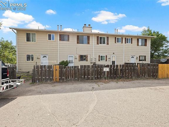 Townhome living without the HOA. This cute home features two levels, with a living area and half bath on the main and the upstairs has both bedrooms and a full bath. It has 2 assigned parking spots, fenced front and back patios and a small storage shed. It is close to powers shopping and quick access to COS Airport and an easy commute to Shriever and Peterson SFB's and Ft. Carson.