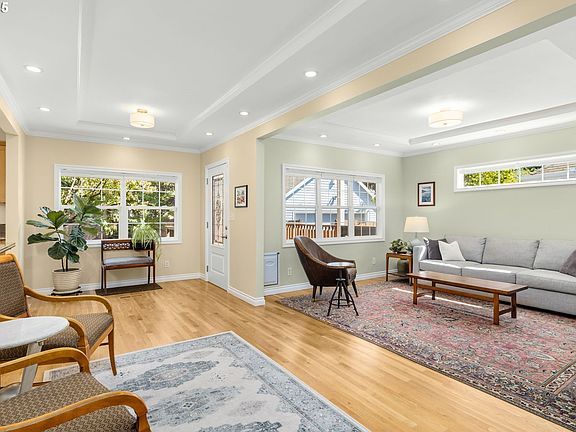 Move right into this statuesque English cottage in established Rose City Park neighborhood. Many charming details, including hardwood floors, tray ceilings and gorgeous original wood-burning fireplace in spacious dining area. Updated open kitchen features stainless steel appliances, downdraft range and cozy breakfast nook with built-in booth. Main floor bedroom adjacent to large bathroom. Light-filled landing upstairs with built-in storage leads to primary bedroom with large walk-in closet, bathroom, and third bedroom with built-in dresser and separate study alcove. Zero-VOC paint and new top-down bottom-up shades throughout. Finished basement has well-equipped laundry area with sink, folding area and lots of cabinet space, plus a large separate storage room. Seismic-retrofitted foundation. New 50-year roof (2023) includes transferrable platinum warranty. New Hardie Plank exterior lap siding (2024), electrical panel (2024), energy- efficient heat pump hot water heater (2025) and insulation (2023). Fully-fenced garden with beautiful landscaping, deck and fruit trees, plus detached bonus building for yoga or art studio, home office or gym. Walk to Normandale Park, Rose City Park and Golf Course. Two blocks to bus line, food trucks and beer garden. [Home Energy Score = 3. HES Report at https://rpt.greenbuildingregistry.com/hes/OR10203728]