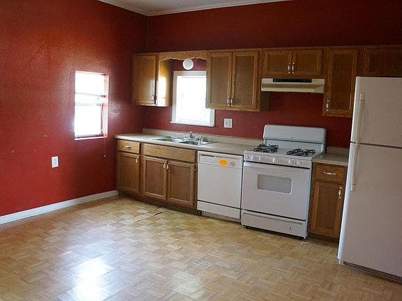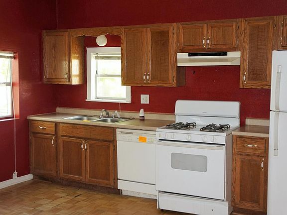 2 Bedroom home in town with chain link fenced back yard, nice sunroom or breakfast nook, large room sizes, CH/A, &appliances (condition unknown. Enjoy split floor plan with 1 HUGE bedroom upstairs & an additional bedroom on the main floor. The large kitchen has lots of cabinets and appliances, and the large livingroom offers a nice place for family time.