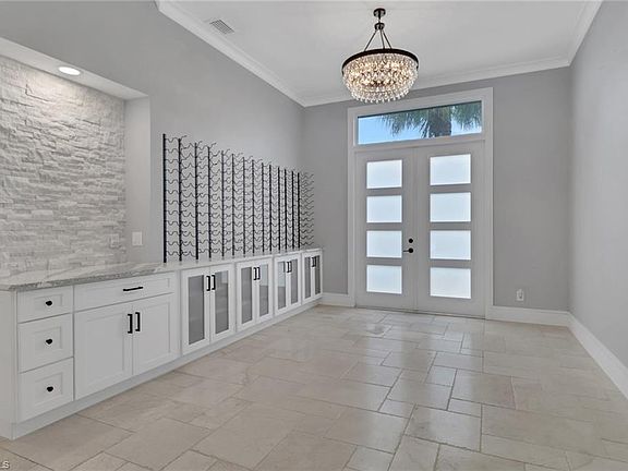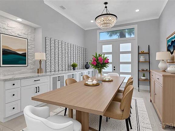 This beautifully redesigned home is nestled on an oversized lot in the highly sought-after Imperial Golf Estates, offering approximately 2600 sq. ft. of living space with 3 bedrooms and 2½ bathrooms. Originally built in 1988, the residence has been fully renovated between 2022–2025 with premium upgrades for modern living and peace of mind. From the moment you step inside, soaring vaulted ceilings and a wall of French doors fill the interior with natural light, creating a bright and airy ambiance. Neutral tones and clean architectural lines provide a timeless backdrop that complements any style of décor. The well-appointed kitchen boasts custom cabinetry, double oven, propane cooktop, serving counter, and solid-surface countertops, seamlessly connecting to a casual dining area. A convenient powder bath serves guests with ease. The master suite is a true retreat, featuring dual walk-in closets, a tray ceiling, and a beautifully updated en-suite bath. One guest suite is oversized and offers a private en-suite bath with direct pool access—perfect for family or visitors seeking privacy. Outdoor living is at its finest with a brand-new oversized pool (lap and regular) with a sun deck, expansive paver lanai, covered patio for shaded entertaining, and lush tropical landscaping that enhances privacy. The spacious lot provides room for children and pets to play, complemented by a new fenced yard and turf. Additional highlights include an elegant circular drive, side-load garage with utility/storage space, and a lanai storage closet. This home is equipped with exceptional upgrades: all new hurricane-rated windows and doors, roll-down shutters for the front and rear, roll-down lanai screen, standing seam metal roof, solar system, new insulation, new A/C with ductwork, dual tankless water heaters (one propane, one electric), new Pex plumbing and fixtures, upgraded cabinetry and lighting, and a 24kW Generac standby generator with a 750-gallon buried propane tank powering the entire home, including the pool. Modern security is in place with a Ring camera system, ensuring peace of mind. Truly move-in ready, this home blends timeless design with today’s most sought-after features—an exceptional opportunity in one of Naples’ most desirable communities. Images feature digital staging for visualization purposes only; property is unfurnished.