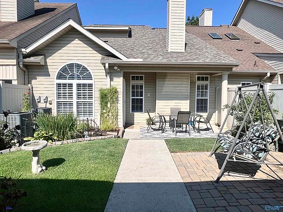 Move in ready & seller says over 45k in upgrades!!!! The layout seamlessly connects the living, dining & kitchen areas w/ cozy fireplace & 18 ft ceilings hosting a spacious & inviting atmosphere. There are two bedrooms, bath & loft upstairs w/ large attic storage. The lg master on main floor is isolated w/glamour bath & walk in closet. Enjoy the 9 ft ceilings, transom windows, smooth ceilings, rounded corners, cozy fireplace & beautiful LVP floors. New HVAC's in 2022, termite bond w/ Cooks & close to shopping, churches & restaurants! New master bath shower and closet added 2024, new roof 2025, enclosed garage 2021. 15 minutes to Redstone Arsenal. HOA covers pool, gym clubhouse & lawn care!!!