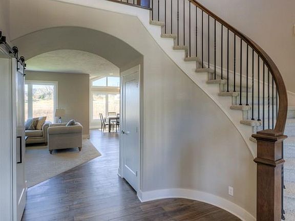 READY NOW! Soaring entry with spiral staircase greets you in this plan by Landmark Performance Homes. Open kitchen with SS appliances, quartz counters, wood flooring and custom cabinetry with huge WI pantry! Loads of windows and light in the great room with cozy gas fireplace w/natural stone. Master suite with bath with WI tile shower & large WI closet. Enjoy the sunset from your deck and large yard backing to trees. Walk to nearby park or schools.