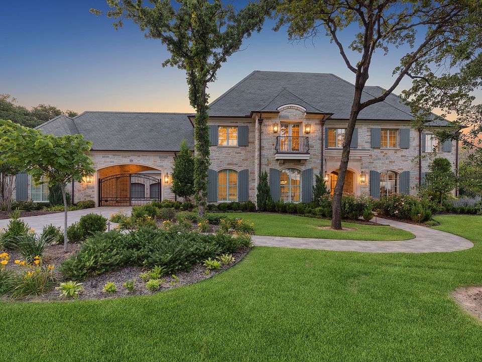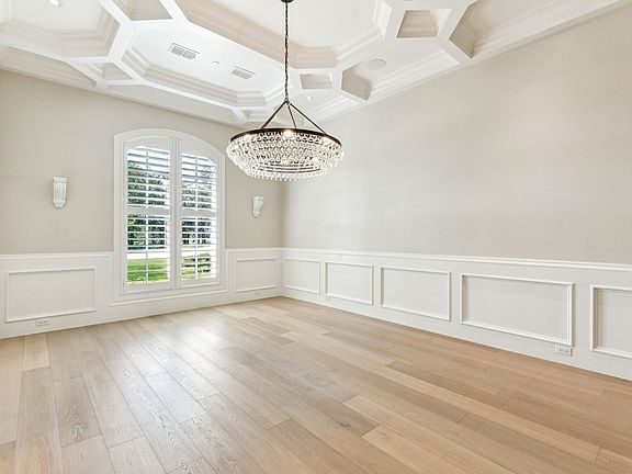 Majestic French Country Estate Home located in the ESTATES OF QUAIL HOLLOW! This meticulously designed 7,320 sq ft, 4-bedroom, 4.5-bathroom home is nestled on a private 1.5+ acre cul-de-sac homesite. This estate showcases serene pond views from your front door and a park-like setting in your backyard! Grande French doors invite you into an impressive foyer with gleaming floors, custom millwork, and a custom hand-forged iron chandelier. The gourmet kitchen showcases Taj Mahal honed quartzite double islands, Wolf 6-burner range with griddle and double ovens, SubZero refrigerator, Cove dishwasher, and adjacent bar with wine refrigerator and Scotsman ice maker. The great room features a dramatic floor to ceiling paneled wall with a 10-ft cast stone fireplace and chevron inlay, vaulted wood ceiling, and an abundant wall of glass windows and French sliding doors which offer spectacular views of this magnificent property. Retreat to the luxurious primary suite with diamond cut marble floors, Hollywood soaking tub, walk-in marble shower, two vanities, makeup bar, and two custom walk-in closets. Additional highlights include multiple game rooms with wood beam ceilings, premiere study with coffered ceiling and wood panel walls, home gym, extended covered patio with outdoor kitchen and gas grill, custom stone fireplace, sparkling pool and spa, sauna and more! Every exquisite detail reflects exceptional craftsmanship and designer finishes in this highly coveted 24-hour guard gated community!