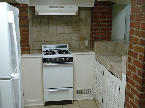 Tree lined streetFlat backyardKitchen countertop barTile floorsTiled shower