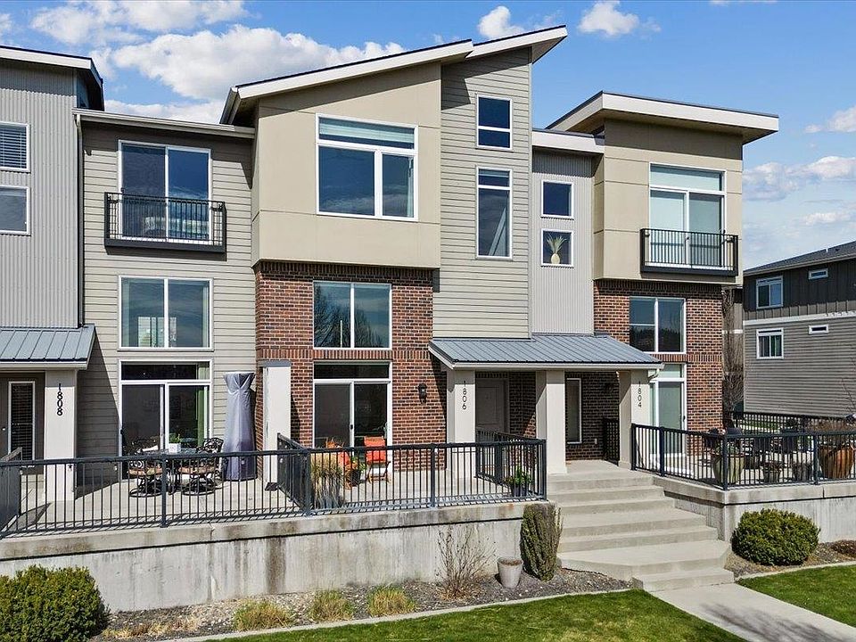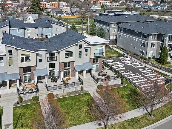 This stunning Kendall Yards 2 bed, 2 bath & 2 car garage with EV charging station, townhome has sweeping views of the Spokane skyline and river. This home has it all with modern design with high ceilings and floor to ceiling windows that flood the interior with natural light. Featuring a designer kitchen with office space, that overlooks the living room, high end stainless steel appliances, an island perfect for meal prep, and quartz countertops. Enjoy your morning coffee on your large patio while taking in the views of the city and river. Location wise you could not ask for more. Just minutes away right out your doorstep there are an array of restaurants, retail shops, and parks. Whether you are exploring the local culinary scene or strolling along the Spokane River this home has everything you will need. HOA includes snow removal, and W/S/G, and work out gym.