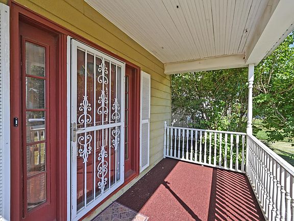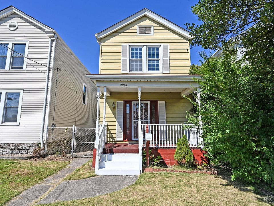 Charming 2-bedroom, 1-bath home with a welcoming covered front porch. Step inside to discover beautiful picture-framed hardwood floors and soaring ceilings that add to the space's airy feel. The spacious eat-in kitchen opens to a back deck, perfect for entertaining, and a fully fenced yard for privacy. Two generously sized bedrooms can be found on the second floor. The oversized 2-car garage is conveniently located off the street behind the home. The unfinished basement offers excellent storage space with the potential for additional living areas. Recent updates include HVAC installed in 2020. Estate sale, property is being sold as-is.