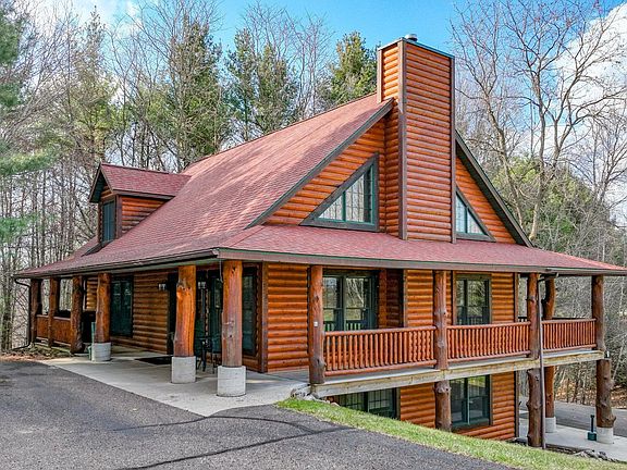Escape to your own private Northwoods haven—just 10 minutes from town! This custom-built log home offers rustic charm with modern comforts, perfect for year-round living or a peaceful getaway. Surrounded by mature trees, the open-concept layout features a spacious kitchen with snack bar overlooking a vaulted living room with stone gas fireplace and second-floor loft. Bedrooms and baths are generously sized, and outdoor spaces include a cement patio and covered wrap-around deck. With room to add a garage, this property suits full-time living, multi-generational use, or a second home. Previously used as a weekend retreat and small conference space, it offers flexibility for the next owner. Enjoy nearby fishing, hiking, cross-country skiing, orchards, local dining, and shopping. Potential for short-term rental with proper county permits.