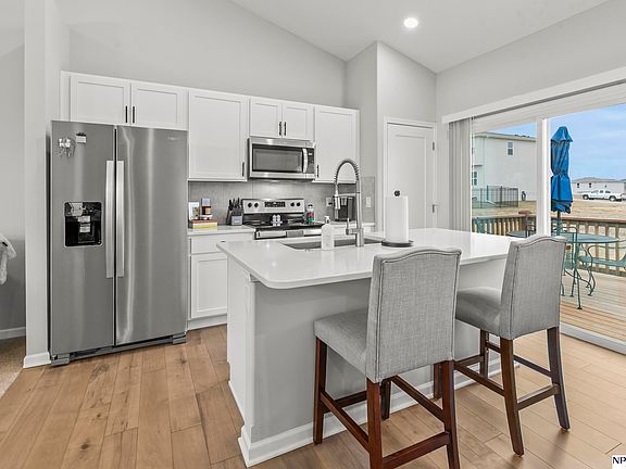 Meticulously maintained one owner home is ready for it's new owners! Like New this 3 Bed 2 Bath (with bonus basement bathroom rough-in) is only 2 years old & feels hardly lived in. Stepping inside you'll be greeted with neutral tones and tons of natural light. Inviting Main floor living area offers bright and airy 12'+ vaulted ceilings & Open concept eat-in kitchen w/quartz counters, Eng. HW Floors, SS appliances, pantry, dining area, & access to cozy back deck w/no current backyard neighbors. 9' Ceilings throughout the main level w/beautiful full bath in hallway outside the 2 guest bedrooms, ample closet space. Primary BR features pan ceilings, corner windows, large closet & spacious 3/4 en-suite. Basement has family room, under step storage & generous sized storage room w/bathroom rough in, & laundry area w/built in cabinet storage. Large Heated garage 21'W X 23'+D. Sprinkler system. Recently New Washer/Dryer & Fridge, Retaining Wall. Gretna Schools!