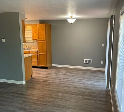 3 bedroom 2 bath one level duplex unit, almost fully refurbished by a skilled craftsman of the highest order. New flooring throughout, new paint, new blinds, new all stainless appliances. Includes a fireplace, single car garage, washer and dryer hook-ups and a fenced back yard with deck. Located on the west end of a small cul-de-sac with front facing east. Sorry, no smoking and no pets. Available now. Owner pays water and sewer. Tenant pays electricity and garbage. Yard care responsibilities split with duplex neighbor. No smoking building and no pets allowed. Garage and one driveway space for parking.