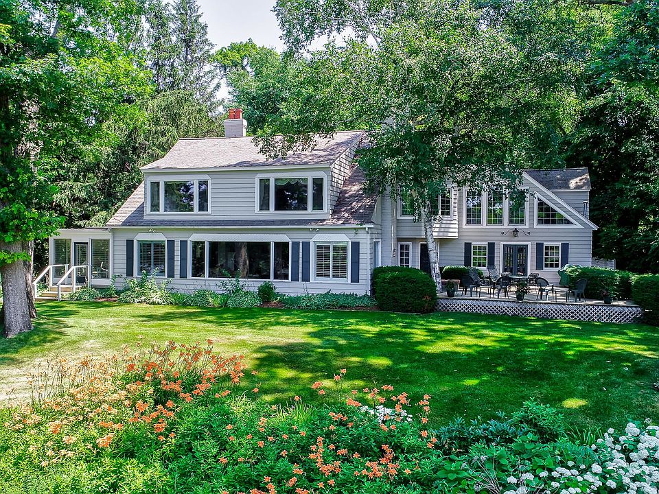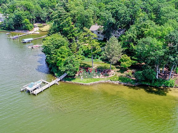 300' FT OF PRIME SPRING LAKE WATER FRONTAGE is the setting for this stately 4 Bd, 3 1/2 bath Two Story home with over 5,000 sf offering panoramic water views and wooded privacy! Features include Large Living room which features Hardwood Floors, Woodburning Fireplace and a wall of windows overlooking the lake and beautifully landscaped yard. The formal Dining and the Sunroom perfect for entertaining and has French doors leading to the to the fully applianced kitchen with granite counter tops, white cabinets, Subway Tile Backsplash, island/snack bar, and adjoins the Laundry room with a door to the Patio which overlooks the Pool.The relaxing Upper Level master suite has its own Views of the Lake, gas log fireplace, Built in Cabinets, Huge Closet, bathroom with tiled shower, Soaking Claw-foot tub, pedestal sink and a clothing chute! The upper level has two more bedrooms, full bath and Newer Family Room with amazing sunset views. There is also a Main Floor office/Bedroom and overlooks the beautifully lit landscaping that surrounds the in-ground pool. Other Amenities Include a 100 ft Dock with Lift, Very Private Wooded setting with Ravines on Both Sides, and a cute playhouse. This home is truly a must see! Call for your private tour today.