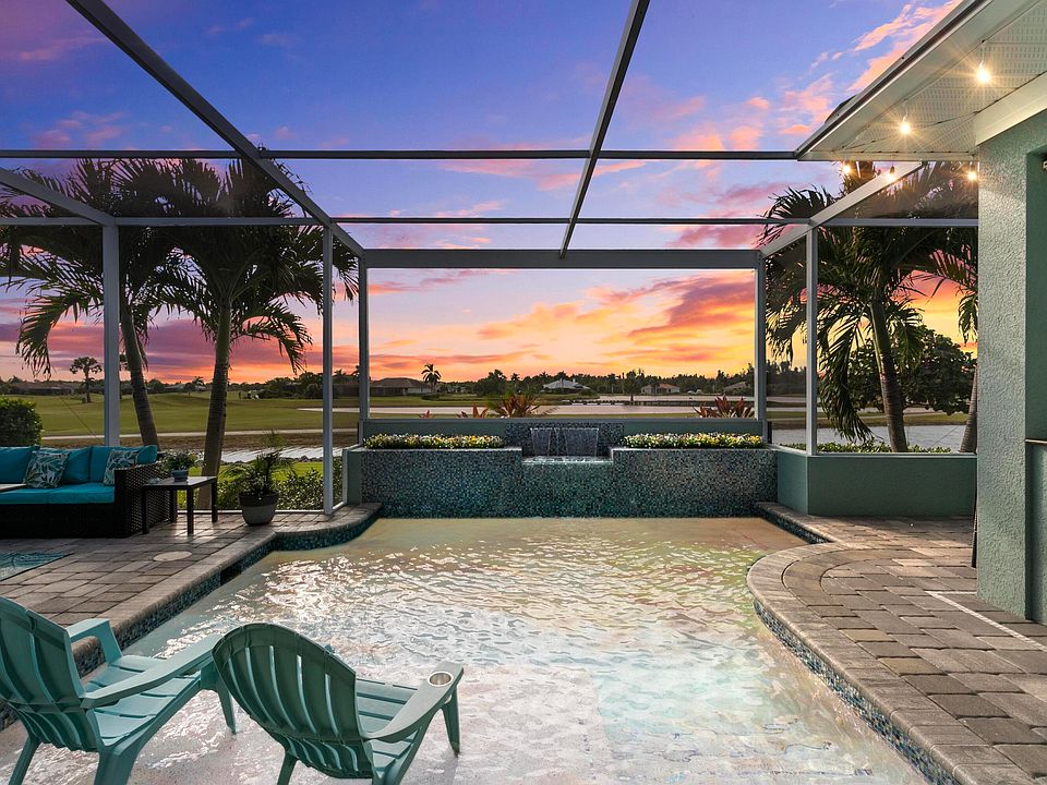 This custom-built home is a testament to exceptional quality. Built by a general contractor as their personal residence, there is meticulous attention to EVERY detail. Step inside and you're greeted by a home that boasts HIGHLY UPGRADED features throughout, both seen and unseen. Superior craftsmanship includes not only stunning tile work & carpentry, but things you can't see like superior insulation & specially designed HVAC that lead to super energy efficiency. The yard is thoughtfully designed for privacy, drainage & beauty. Breathtaking sunsets bathe the home in gorgeous light. A sparkling pool & waterfall overlook the golf course & 3 picturesque lakes. The outdoor oasis is perfect for entertaining with a fabulous summer kitchen with bar & ample covered space with added roll down storm screens. Car enthusiasts & hobbyists will appreciate the massive oversized garage, providing space for 3 cars & a workshop. This property offers not just a home but a true SW Florida lifestyle. With too many upgrades to list, you are invited to experience unparalleled quality and a true standout in its class. Come discover extraordinary features & LOW FEES that set this home apart from the rest.