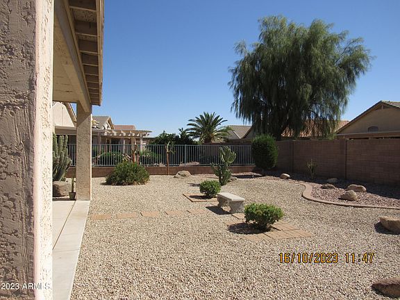 Golf, swim, recreate and play in this beautiful 55+ gated community in the beautifully manicured subdivision, Arizona Traditions. This community is located very close to everything that Surprise has to offer. When you first walk in the front door of this home you will notice the high cathedral ceilings that pull you in past the hallway which leads to the large home office and second bedroom that is at the front of the house. Then towards the primary suite entrance and living/family room that is open to the large kitchen and dining areas. There is a spacious 2 car garage with cabinets and a nice covered patio to sit out back and enjoy a morning coffee or afternoon tea.