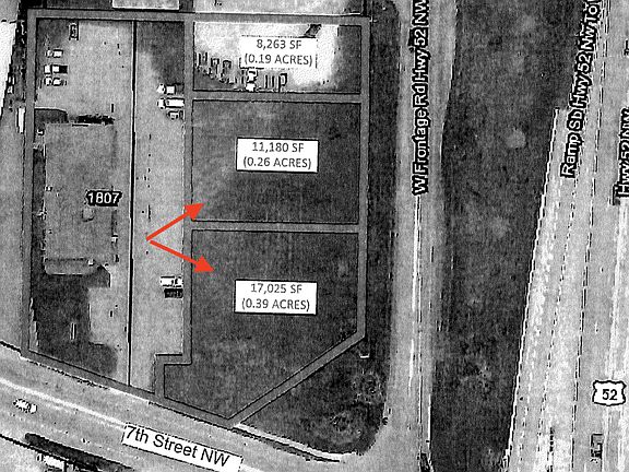 This lot with the properly placed building would be visible from Highway 52 North. Located along the frontage Road the 7th Street NW Corridor has become very busy.