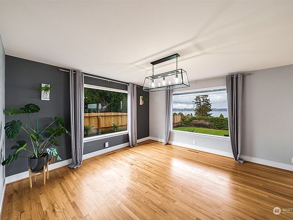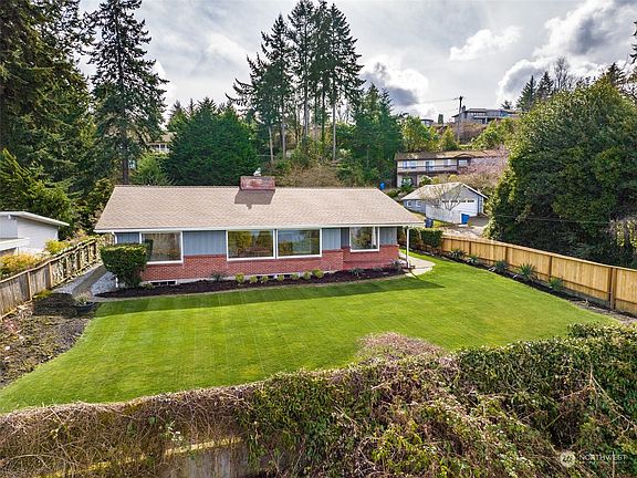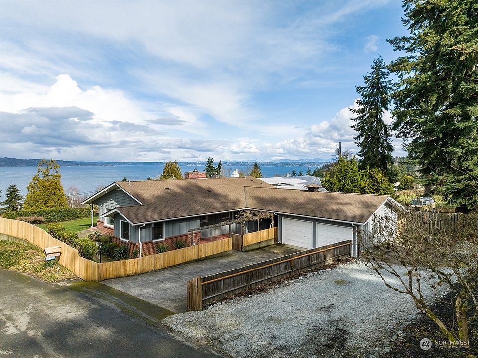 Spectacular views of the Sound, Olympic Mtns are yours from this Mid Century 1 story home with basement that has a Primary bedrm with bath, along with 2 bedrms up with hardwood floors, 1 3/4 baths, and kitchen with eating space. The Living Rm, w/fireplace, and Dining room are spacious and features hardwood floors and great views. The basement family rm is spacious and includes a bedroom and workshop. There is a 2 car detached garage with a covered walkway The 20,200 sf lot has mature landscaping, fully fenced yard around the home, a patio, sprinkler system, and storage space for boats/Rv's. Community features include waterfront/private beach access, club house and boat ramp. Close to Dash Point St Park, hiking trails and schools.