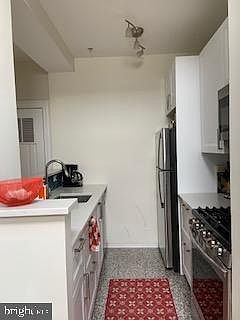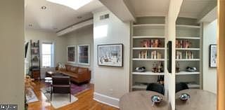 Situated on a quiet, leafy block just steps from vibrant 18th St., this elegant Adams Morgan penthouse presents a sanctuary in one of Washington's most exciting neighborhoods. The unit itself features a smart layout and boasts 13-foot ceilings, several tall windows, and a skylight for additional sun. Hardwood floors throughout the unit intersect with original baseboard mouldings. Built-in bookshelves and a wood-burning fireplace make the space warm and welcoming. Both the kitchen and bathroom are recently renovated and boast top-of-the-line appliances, including an in-unit washer and dryer from Bosch, a SilencePlus dishwasher from Bosch, a gas-powered Samsung oven and stovetop, and a built-in GE microwave. Other amenities include a Nest thermostat, dimmer lighting, and three substantial closets for ample storage. Doorway access to a fire escape will give the tenant an opportunity to enjoy some fresh air. The building, a three-story walk-up with 24 units, dates to 1909. A short walk around the corner will get tenants to 18th Street, home to some of Washington's finest restaurants and bars. Kalorama Park and Meridian Hill/Malcolm X Park are both within striking distance, and Marie Reed Recreation Center, with its tennis courts, indoor lap pool, and turf field, is right across the street. Streets Market, Harris Teeter's and Trader Joe's on 14th St. are all viable grocery options. Access to two Metro stations within a 15-minute walk. Pets under 25 lbs. are allowed in the building. Street parking is available with an option to purchase a spot from the building. Water, gas, electric and condo fees are included in monthly the payment. Cable/internet is not.