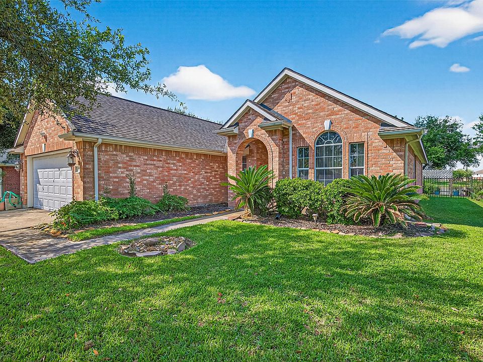 Welcome to this beautifully maintained lakefront 4-bedroom, 2-bath home ON THE LAKE! Featuring warm tones & elegant wood-look floors, this home is move-in ready. The open-concept kitchen and living area are perfect for entertaining or relaxing, while the split floor plan provides privacy with the spacious primary suite tucked away from the secondary bedrooms. One bedroom includes a built-in desk, ideal for a home office or study. THIS DESK AND SHELVES CAN BE REMOVED BY LANDLORD. Step outside to enjoy peaceful lake views, morning walks on nearby trails, or evenings on the covered patio. You'll enjoy extra privacy in this family-friendly community with access to a swimming pool, fitness center, clubhouse, and game room. Conveniently located near Interstate 10, Grand Parkway/Highway 99, shopping, dining, and entertainment options. Minutes from major hospitals such as Houston Methodist West, Memorial Hermann Katy, and MD Anderson West. Only 12 miles from the Energy Corridor.
