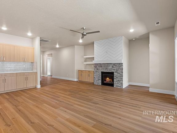 YOUR LUCKY DAY! PRICED TO MOVE! Plus, enjoy a $5,000 concession when you work with the builder’s preferred lender! Discover elevated living in this stunning 3-bedroom, 2-bath home with a dedicated office—perfect for remote work or creative space. Step inside to an open-concept floor plan featuring quartz countertops, premium vinyl plank flooring, a stainless gas range, and a bright living area with a custom-built fireplace and built-ins that exude comfort and style. Two spacious guest bedrooms share a beautifully finished full bath with luxury tile flooring, quartz counters, and a tiled tub/shower combination. The private primary suite feels like a retreat with dual vanities, a fully tiled step-in shower, and designer touches throughout. Located in one of Meridian’s most convenient neighborhoods, this home offers easy access to the freeway, Albertsons Marketplace, the YMCA, and top-rated shopping, dining, and schools. The HOA maintains front and back lawn care, providing a low-maintenance, turnkey lifestyle so you can simply move in and enjoy. Don’t miss your opportunity to make this beautiful new construction home in Meridian, Idaho yours today—schedule your private showing before it’s gone!