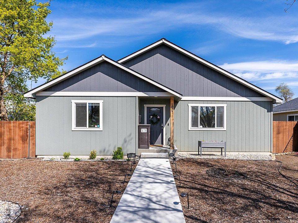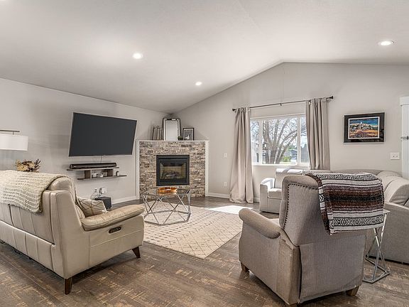 Discover this better than new 3 bed 2 bath single level rancher! Bright & airy open concept floorplan w/ laminate flooring, vaulted ceilings & gas fireplace. Gorgeous kitchen includes granite counters, SS appliances, pantry, and island w/ butcher block counter & eating bar. Spacious primary bedroom w/ attached full bath, granite counter, double sinks & walk in closet. 2 more bedrooms & second full bath conveniently situated away from primary bedroom. Relax in the private fully fenced back yard w/ pergola & automatic gate for easy access to garage. Fenced front yard offers low maintenance landscaping. Home includes central AC, tankless water heater, finished and insulated 2 car garage w/ plenty of storage shelving, off street parking, & alley access. Don’t miss this absolute turnkey home!