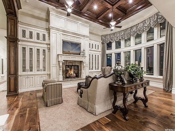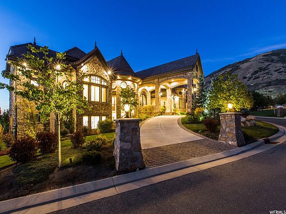 Majestic views and timeless luxury in Draper's prestigious neighborhood makes this one of Utah's finest homes. The curb appeal will leave you salivating. This impressive architecture is loaded with vaults and massive ceiling heights. Deep moldings frame the 2-story windows and valley views below. Rich custom cabinets, built-ins throughout the home are extraordinary. The floor plan is perfectly suited for a family with 2 suites on the main and a spiral staircase connecting the 2 bedrooms upstairs to the 2 suites downstairs. An open flowing great room with an elaborate kitchen and walk-out lower-level, perfectly orchestrated for large family get together's especially with the plush tiered theater room with a 135" screen and 7.2 surround sound system. A designer influence throughout the home has created a child's paradise inside and outside in the yard. It will steal your heart! A community pool and tennis court are all part of this package. WOW! Bring your custom home fanatic! It's already built and TOTALLY FURNISHED!