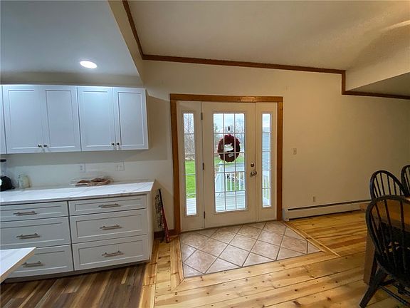 Great country home with many new updates. Seller has only been in the house for a year but has done so much. Remodeled kitchen with new flooring, cupboards, sink, countertop and some appliances. One car garage was built in 2023. Replaced radiator heaters in many rooms. New ceiling fans in living room and dining room. Seller has done the front steps and stoned driveway. All floors were refinished. Also, some electric done in kitchen, bathroom and laundry room.