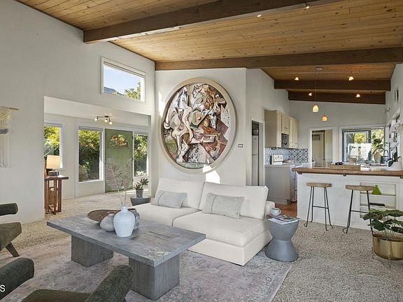 Built in 1974 (est.) by acclaimed artist and Walt Disney's most well known Production Designer, Frank Armitage (Sleeping Beauty & The Jungle Book). This Shangri-La retreat home sits on almost 10 acres with unobstructed views from multiple decks overlooking the entire Ojai Valley, portions of the upper valley and the Topa Topa mountains. Enjoy your own hiking trails and watch the pink sunsets on the Topa Topas. The main house has 2 primaries (the 2nd might also work as a large entertaining room). There is an artists room (the light is amazing) with 90 degree views of the Topa Topas and the Ojai Valley . The primary bedroom sits next to the living room and has views of the valley and a peak of Lake Casitas. The second primary bedroom is located a few feet below the artists room. The home also has a mural created by Frank Armitage, reminiscent of his time spent working with Mexican Artist Sisqoeiros. There are also two cottages on the property. One of the units was built with local riverstones and the second used to be a music studio with a full bath and kitchen (studio). As you drive down the private road through avocado and orange orchards, you are welcomed by the neighbors' ducks, sheep, goats, chickens and the occasional farm animal. Do not forget to say hi to Sweet Lillie the local Anatolian Sheepdog who lives nearby and protects the farm animals. There are amazing boulders and rolling hills all over the property. There are very few neighbors down this private road. You can even walk to your neighbors tasting room at the Ojai Olive Oil Co. Truly hard to imagine until you have experienced this amazing zen-like property. Wonderful opportunity to have as a home or turn it into an artist's retreat. Build date and square footage are estimates.https://www.1807ladera.com/unbranded