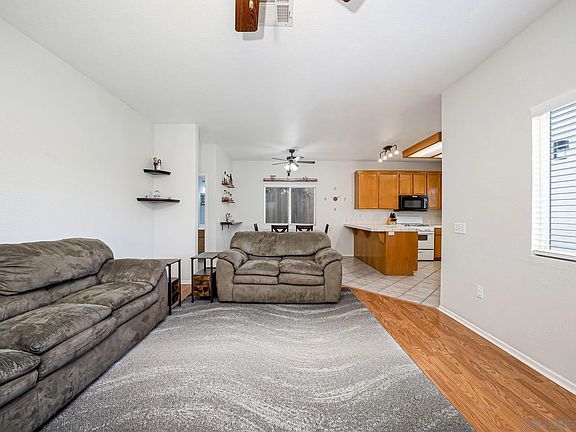 Well cared for home located in the quiet neighborhood of Friendly Terrace. As you enter, the open living room greets you, awash in natural light cascading through the large windows. The kitchen is equipped with oak cabinets, ample storage and counter space and a dining peninsula adjacent to the dining room. The private yard has updated turf and is perfect for a summer BBQ. The bedrooms are all on the second level, accessed via a carpeted staircase. The master bedroom features a private en-suite bath, which includes double vanities, and a large walk-in closet. Secondary bedrooms are both spacious with walk-in closets. Home has ceiling fans and custom blinds throughout. SOLAR installed!!