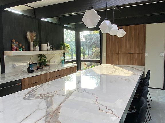 Mid-century modernCustom-designed elementsHidden wireless chargerFloor to ceiling windowsTranquility of naturePond in the backPitt cooking stove