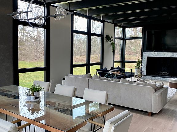 Beautiful, secluded 3 BR/2.5 BA Mid-Century Modern / Japandi-inspired home on over 4 acres of land in Harleysville, PA, minutes from major freeways, dining and shops. The home comes fully furnished with smart appliances, lighting, and dual-zone thermostats. Rental includes usage of the 3-bay garage. Property also has a pond in the back of the serene deck to the Primary suite. Custom-designed elements and luxuries like the Pitt Cooking stove, hidden wireless charger on the 12' kitchen island, a hidden walk-in pantry, and floor to ceiling windows surrounded by the tranquility of nature make this a treasured property.
