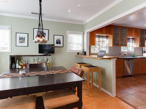 Charming 2Bdm 2Ba detached Spanish style gem is situated on a large lot with loads of curb appeal. Don't miss this completely remodeled floor plan set just minutes from anywhere you want to be in LA. The kitchen features upgraded counters and new newer cabinets, a large pantry plus breakfast bar and all appliances included. Formal living and dining room are both light and bright boasting upgraded trim, finishes and a gorgeous stone fireplace. A perfect combination of travertine tile and hard wood flooring are tastefully matched up with two tone paint throughout the house. Both bedrooms include walk in closets and the master features a remodeled bath and French doors leading to a secluded patio. The large backyard features lush landscaping, stone pavers and plenty of privacy. Long driveway allows for plenty of off street parking. Plus detached 2 car garage. Prewired alarm system plus Central AC are just a few of the perks! Tenant pays all utilities; Pets w/ Approval.