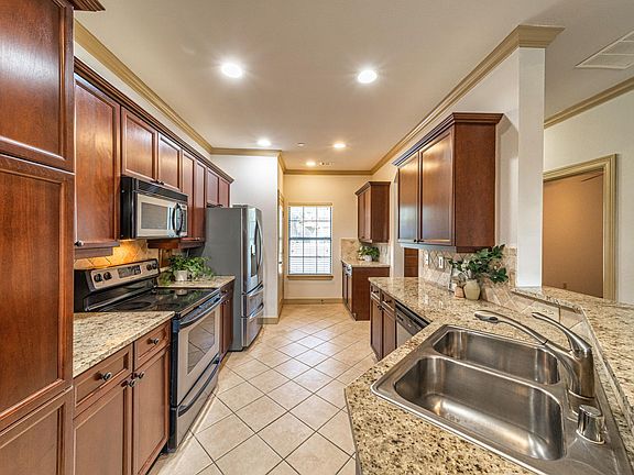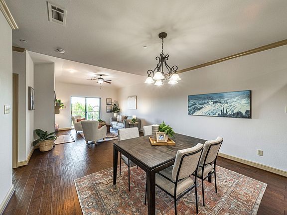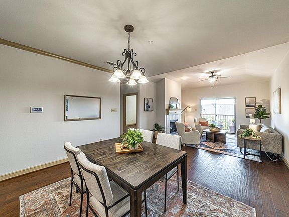 Welcome to this beautiful condominium located in Rockwall within walking distance to the Harbor District with a lake view from your patio. Walk into an open floor plan that greets you with natural light, wood flooring, a galley kitchen with granite countertops & stainless-steel appliances including a French door refrigerator. The living area has a fireplace & open onto your private patio. The oversized primary bedroom has an ensuite bath with jetted garden tub & separate shower, double sink vanity with a walk-in closet. The second bedroom also has an ensuite bath with a walk-in closet. The wood flooring is throughout the condo. Washer dryer is also included. Walking distance to the lake and Harbor district. Covered assigned parking space.