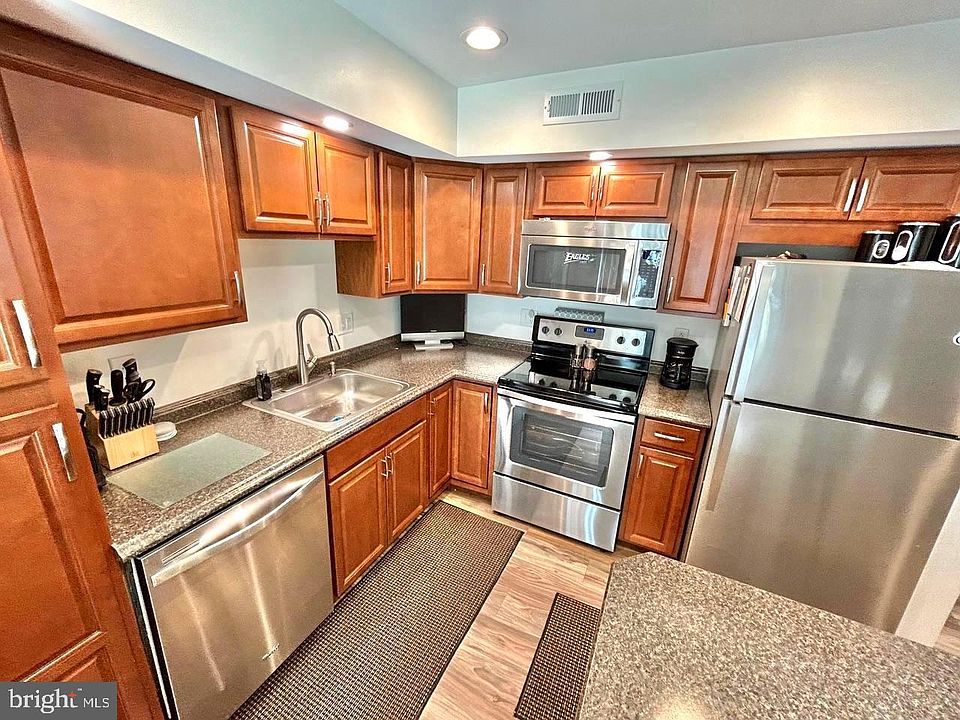 Fantastic Remodeled from TOP to BOTTOM this first floor UNIT in EXCELLENT CONDITION!!! Just bring your dishes and clothes! FRESHLY PAINTED, ALL NEW RECESSED LIGHTING, NEW KITCHEN CABINETRY with PANTRY CABINET & CENTER ISLAND, STAINLESS APPLIANCES INCLUDING MICROWAVE RANGE HOOD! ALL NEW BATHGROOM with FLOATING VANITY! LINEN CLOSET and LAUNDRY. GEORGEOUS HIGH END LUXURY VINYL PLANK FLOORING THROUGHOUT.B:ACK STACKED STONE FIREPLACE! ALL NEWER THERMAL REPLACEMENT WINDOWS & FRONT DOOR & STORM DOOR. Extra storage in extra Closets. L-Shaped BEDROOM with 2 CLOSETS! Enjoy having NEWER ENERGY EFFICIENT NATURAL GAS HEATING & C ENTRAL AIR!