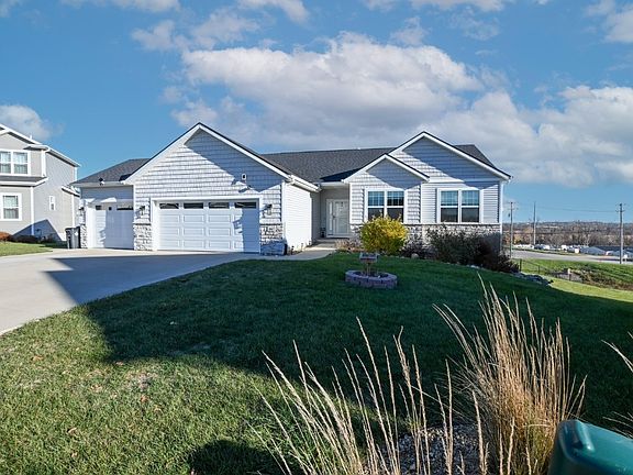 Stunning Hilltop Home with Views, Walkout Lower Level & Modern Finishes! Perched at the end of a cul-de-sac on a hill overlooking the southwest side of the city, this home delivers exceptional views and unmatched privacy. Morning light floods the open floor plan, thanks to a wall of oversized east-facing windows in the great room. The space is anchored by a shiplap gas fireplace, giving the room a warm, modern feel. A smart drop zone off the 3-stall garage and a convenient laundry room lead you straight into the heart of the home. The modern kitchen features updated stainless steel appliances, quartz counters, and a central island with seating for 3–4, perfect for cooking, gathering, and everyday living. The walkout lower level expands your living space with a comfortable family room, a 4th bedroom, a full bathroom, a work room, and generous storage. With views, style, and functionality, this home checks all the boxes—inside and out.