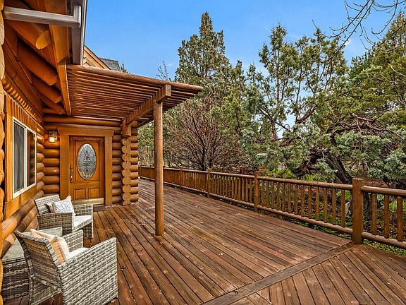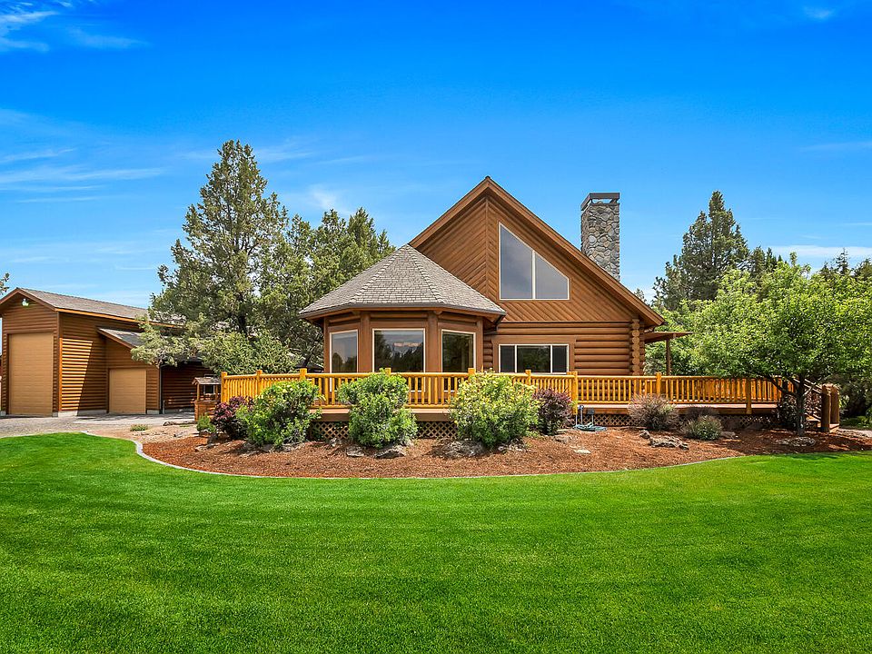 Step onto nine acres of pure Central Oregon lifestyle where wide open sky, Cascade Mountain views and direct access to BLM land make every day feel like a private retreat. This warm log home invites you out onto a wraparound deck that overlooks lush, thoughtfully landscaped front and back yard spaces with a tranquil water feature. Inside, the great room, kitchen and dining area center around rich woodwork and a cozy fireplace, while the upper level primary suite offers a generous bath, walk in closet and its own private patio for sunrise coffee or stargazing at night. An RV shop with attached office or studio space gives you room for projects and toys. Horse lovers will value the well set up barn with stalls and tack room, plus a round pen, and a greenhouse ready for your gardening season. This is the kind of property that lets you work, ride and relax without ever wanting to leave home.