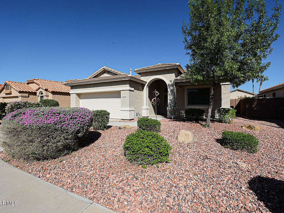 Don't Miss This Charming Move In Ready Home Located within the Gated Community of Arizona Traditions. Open Floor Plan with Large Den/Option for that 2nd Bedroom and 2 Bathrooms. Home Features Newer SS Appliances, Newer HVAC and Hot Water Heater just to name a few. Shutters throughout, Tile in all the right places with carpet in Bedroom/Den and living room. Freshly Painted Interior & Exterior painted 4 yrs ago..New Raised Height Toilets, Led Lighting, Newer Irrigation System. Garage Has Overhead Storage as well as Built Iin Cabinets & Work Bench and insulated Garage Door. Back yard with Block Wall & Extended Covered Patio. Extra concrete side yard and walkway ready for outdoor kitchen or great entertaining area.