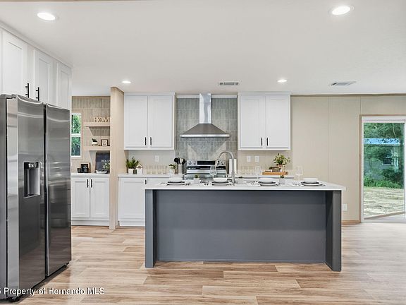 MOVE-IN READY!! BRAND NEW STUNNING CLAYTON HOME!! 4 Bedrooms + 2 Bathrooms + over almost a 1/2 acre lot (.40) + on a paved road with Beautiful Mature Oak Trees and NO HOA and NO LOT RENT!! You own the land!! Everything is NEW!! This stunning brand-new, well-built, double-wide Clayton manufactured home is impressive the minute you walk into the home! The designer accent wall in the living room adds character and warmth! The IMPRESSIVE kitchen has an extra Coffee Bar/Butler Pantry area - and is a creative and functional layout design to the home!! The home sits on .40 of an acre of beautifully landscaped land in peaceful Brooksville — and best of all, NO HOA...so bring your boat, camper, ATV, pets, bring it all! Boasting 1,568 sq ft of thoughtfully designed living space in the new warm earth tones, this home offers a large open floorplan with the kitchen open to the dining room and great room making this home feel incredibly spacious, light, bright, and cheery. Great for entertaining family and friends!! The home is loaded with upgrades, including luxury vinyl plank flooring throughout (no carpet), making it as stylish as it is low-maintenance. Even the skirting on the home is the new upgraded cement board!! Step into the designer kitchen, where no detail has been overlooked. You'll love the expansive center island with breakfast bar, perfect for extra seating!! The kitchen features all-new stainless steel appliances, with an extra upgraded range hood with designer backsplash (the focal point of the kitchen), real wood shaker cabinets, gorgeous modern countertops, and designer lighting, sink, and faucets. Lots of beautiful countertop space and lots of cabinets for plenty of storage! The primary suite is a true retreat, featuring a spacious bedroom and a luxury en-suite bathroom with tub and shower combo, dual designer sinks and mirrors. This master bathroom is super spacious and truly an impressive upgrade for the home!! Large walk-in closet in the master suite!! The second bathroom has a tub and shower combo with matching finishes giving that continuous feel throughout the home!! Everything in this home is BRAND NEW: new well, new septic with 2-year maintenance warranty, new HVAC, all new appliances, new water heater, and the home is covered by a 1-year manufacturer's warranty! Enjoy the peacefulness of the surrounding area, adorned with the iconic large live oak trees that Brooksville is known for. And when it's time to run errands or commute, you're just minutes from groceries, shopping, restaurants, and the Suncoast Parkway for easy access to Tampa and beyond. 30 minutes to sunsets at Pine Island, Buccaneer Bay Water Park, kayaking and paddle-boarding the crystal clear Weeki Wachee River, swimming with the manatees, boating and fishing in the Gulf! 40 minutes to Tampa for work and play!! Head into Historic Downtown Brooksville and enjoy all the festivals, art and craft shows, antique shoppes, coffee shops, music on the square, horse-drawn carriage rides at Christmas, dining under the stars, local-flare restaurants, parades, and so much more...it's our little Hallmark Town!! Don't miss this rare opportunity to own a move-in ready home on land with all the benefits of new construction — and none of the restrictions! Schedule your private showing today and start living the Florida lifestyle you've been dreaming of! Home can be financed with Conventional, FHA, VA, and even USDA with 100% financing!!