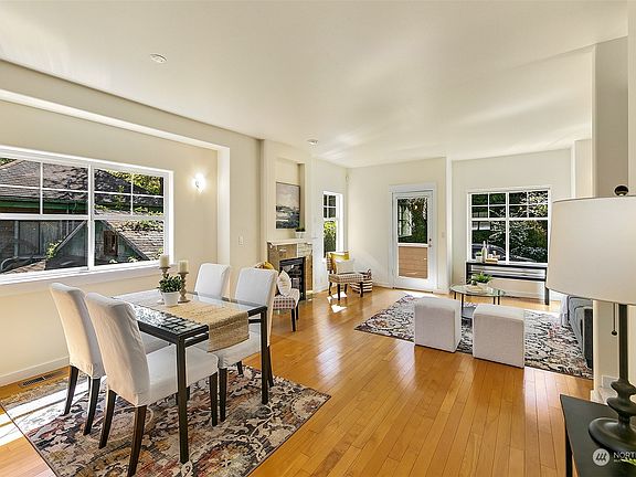 If you like wide-open living space flooded with natural light in a tranquil neighborhood, minutes to Downtown, Capitol Hill & Madison Park, this is the house for you! Forget the claustrophobic design of many newer townhomes. This well-built south-facing home features unusually wide floorplans that give you room to move and breathe! 1st Floor: Charming porch & foyer, two bdrms/offices, private patio, lovely clover-laced gardens, garage. 2nd Floor: Huge updated kitchen, tons of cabinets, new quartz counters, new stainless-steel appliances, full-size dining & living, gas fireplace. 3rd Floor: Cavernous primary suite w/ vaulted ceilings, 5-piece bath w/ skylight, den/nursery, full-size w/d. New carpet & fresh paint throughout. Two balconies.