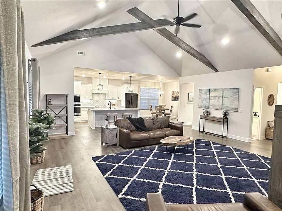 Welcome home to Arlington, located 13 minutes to I-49 & 6 mins to the NEW Home Office. Cox fiber throughout the home. Property features split floorplan w/4 bedrooms and 2 ½ baths. Entryway has 14’ ceilings leading to dining room w/an accent wall & continues to a walk-thru coffee station. Kitchen has double the entertaining areas w/an eat in kitchen & bar seating w/granite countertops. Cook away w/big island, gas cooktop & large walk-in pantry w barn door. Open living room is anchored w/gas fireplace, cathedral ceilings w/wooden beams. It doesn’t stop there -if entertaining is your pleasure, then you’re going to love the 20’ covered patio w/gas fireplace, tv mount & gas hook-up to cook for family and friends. Primary bedroom continues to impress w/9’ ceilings, large walk-in closet & an en-suite bathroom w double vanity, soaker tub & an oversized roomy walk-in shower. Large laundry room w/ storage opens to a 3-car garage & epoxied floor. Must see to appreciate this floor plan! Community pool & pavilion coming.