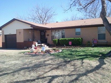 Excellent Location! This home has approximately 1640 sq. ft. & has 4 bedrooms & 1 living or 4th bedroom (very large) could be a 2nd living. Lots of updates have been completed by the current owner. Adorable Kitchen with Granite look counters, faux ceiling tile back splash, painted cabinets & plenty of room for a dinette. Kitchen comes equipped with a sealed burner gas stove, vent hood, refrigerator, microwave, garbage disposal & stainelss sink & faucet. Good size formal dining room as well. Flooring includes wood laminate in the kitchen, tile in the bathroom & carpet. Walls have updated texture & paint colors. Ceiling fans throughout. Windows have been replaced. Solid wood exterior doors & storm doors. Backyard features a covered patio, play set, patio set, 2 out buildings & a wood privacy fence with steel post. Easy maintenace exterior with guttering, brick and facia has siding. Large shade trees & shrubs. This home is move in ready...... Call now for your appointment!