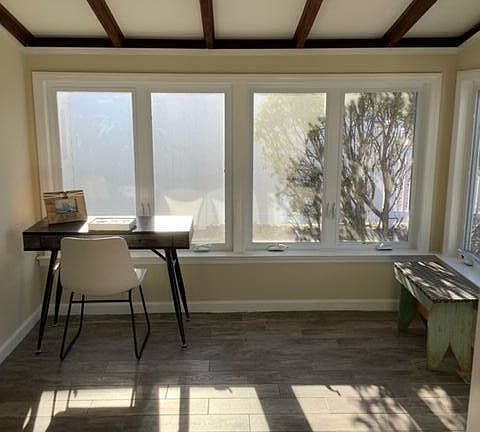 Freshly painted, professionally cleaned, move-in ready 3 bedroom, 1 bathroom with vaulted ceiling and exposed beams. Sunroom with ship-lap walls and a large closet. Porcelain tile flooring and ceiling fans throughout. Kitchen with granite counters, newer ss appliances. Laundry room with newer washer and dryer. An extra space, perfect as a sitting room/office space. Well maintained grounds with a fenced in backyard and patio area. Driveway parking spaces for 3 cars and a shed for added storage space. Near Forked River Bayfront Park and option to be a member of Bayview Beach Club.
