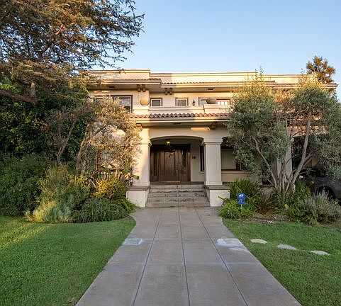 The Winston Raleigh residence. Designed by Henry L. Wilson. This Mediterranean Style home has been totally revamped. Home features great curb appeal with a welcoming porch. There are four bedrooms including a glorious master with en-suite bath and a sitting room and three baths. There are original crown moldings, hardwood floors, Batchelder wood/gas burning fireplace, mahogany accents thru-out the home, a den with sliders to a covered patio and a large formal dining room. The kitchen boasts high end SS Viking and sub-zero appliances. The formal staircase features a gorgeous original stained glass window on the landing. There is a huge finished basement for additional space and/or mans cave. The home sits on a 13000 plus sq foot lot with a heated pool & spa. The gardens feature mature landscaping, fountains, paths, fruit trees, pergolas, a sports court and lots of privacy .HPOZ.